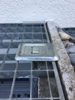 Als Einbruchsschutz für Kellerschächte werden häufig Gitterrostsicherungen verwendet. Diese können je nach Ausführung, über den Gitterrost hervorstehen. Dadurch ist keine flache Auflagefläche für eine Lichtschachtabdeckung mit Fliegengitter gegeben. Bei einer direkten Auflage der Lichtschachtabdeckung auf dem Kellerschacht, würden die hervorstehenden Befestigungsteile, durch das Edelstahlgewebe durchdrücken und dieses verbiegen.
